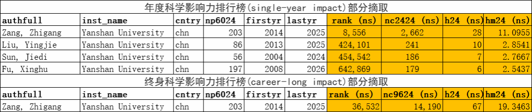 该榜单是斯坦福大学John P. A. Ioannidis教授团队与Elsevier与合作的项目成果,发布在Elsevier旗下的Mendeley Data网站上。榜单主要分为“终身科学影响力排行榜(career-long impact)”和“年度科学影响力排行榜(single-year impact)”两个榜单,前者关注整个学术生涯迄今的影响力,后者聚焦本年度的学术成就。榜单基于Scopus数据库的引用数据系统分析,以被引数(区分自引和他引,提供自引数据)、H指数、HM因子等6种综合指标(composite score,C-score),从全球近700万名科学家中遴选出世界排名前2%的科学家,分为22个领域和174个细分子领域,为科学家长期科研表现提供了一个衡量指标,客观真实反映科学家的学术影响力。