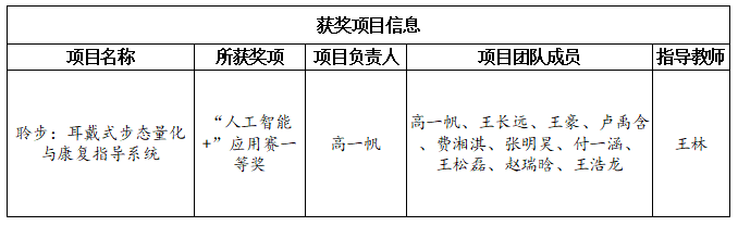 我院王林教授指导的《聆步:耳戴式步态量化与康复指导系统》项目荣获“人工智能+”应用赛一等奖。该项目以脊髓型颈椎病人的居家康复需求为核心,利用深度学习和神经网络技术,实现步态数据的精准量化与康复效果的科学评估。项目展现了卓越的便携性与高效性,通过可视化呈现与量化分析,大幅降低康复过程中的时间与经济成本,为脊髓型颈椎病人的居家康复提供了低成本、客观性强,可以居家康复的新方案。