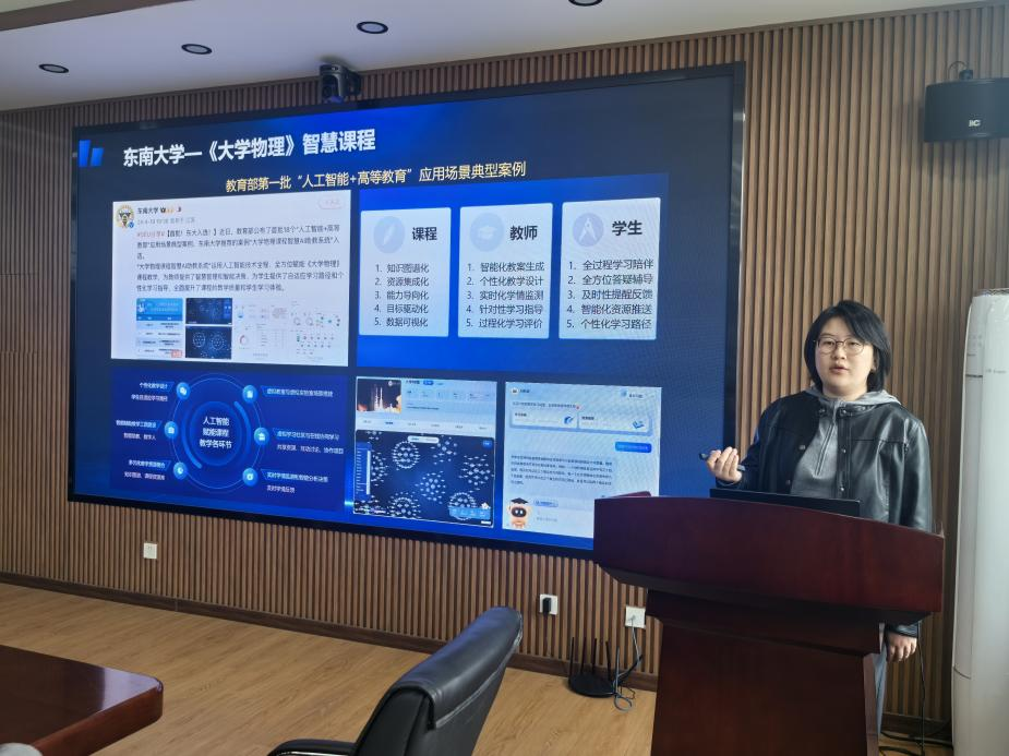 本次培训特邀超星集团高级教学设计师、智慧教学研究院资深研究员周子阳担任主讲。培训以“数智赋能、成果导向”为主线,系统解读了高等教育数字化发展的政策导向与前沿动态。主讲人详细介绍了基于超星平台的智慧课程建设全流程,重点展示了知识图谱、能力图谱、问题图谱等多元图谱构建方法,以及AI知识库、专属智能体、AI助教等人工智能工具在教学中的深度应用。培训还呈现了数字人速课制作、任务引擎驱动的项目化教学等创新模式,并结合多个高校优秀案例,分享了智慧课程在教学比赛及省级认定中的实践成果。