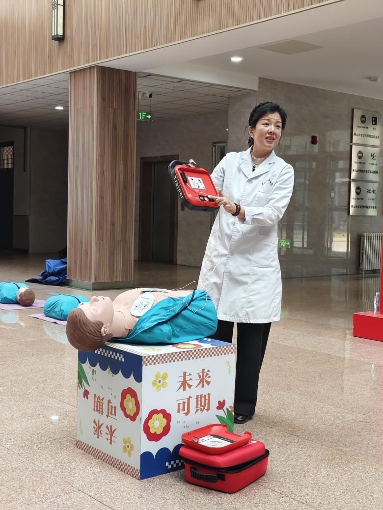 理论学习后,参训师生进行实操演练环节。在医护人员的专业指导下,大家分组在模拟人身上反复练习胸外按压、人工呼吸的标准动作,熟悉AED设备的操作步骤。医护人员全程巡场,一对一指导,及时纠正动作偏差,确保每位师生都能掌握操作要领。现场学习气氛热烈,师生互动积极,通过“听、看、练”的结合,将理论知识转化为肌肉记忆。